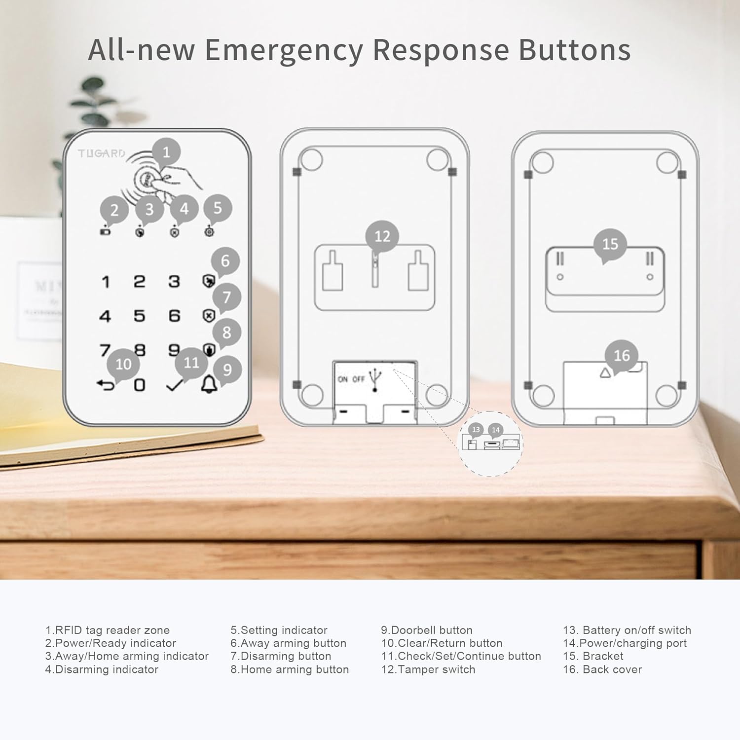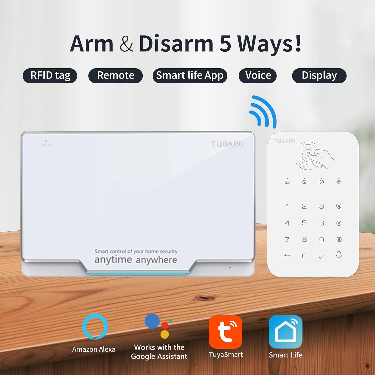 Tugard WiFi Home Alarm Security System,Wireless DIY Smart Home Burglar Security Alarm System 11 Kits, Keypad, Remote Control, Window & Door Sensor, Wired Siren, PIR Motion Detector, Compatible with Alexa Google Home Voice Control for Villa Home Apartment Condos