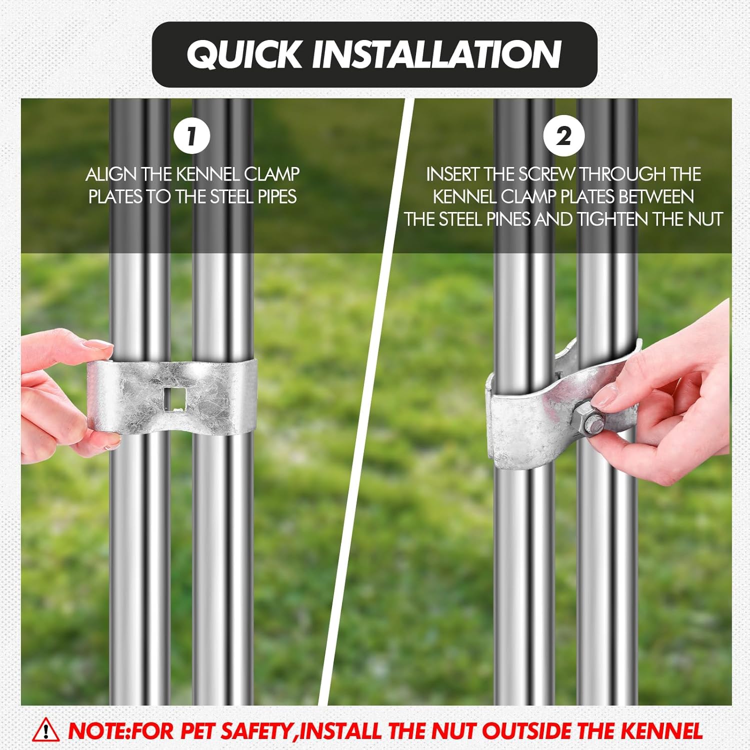 Features: Rustproof: with galvanized coating, the chain link fence fittings are rust resistant, ensuring long term use. Installation method: these chain link fence ties can be installed directly by hand, safer and faster to install with wrench (not included). Specifications: Material: galvanized steel Color: silver Size: about 1-3/8" Package includes: 24 x Chain link fence panel clamps with bolts and nuts Notes: Manual measurement, please allow slight errors on size. The color may exist a slight difference due to different screen displays. Small parts may be included, please keep them away from little kids.